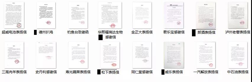 客戶發(fā)來表揚信(部分)